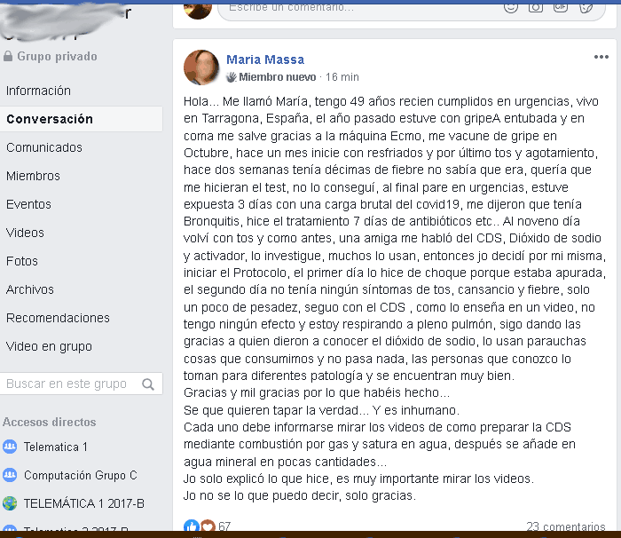 Busque más información en Internet como Andreas Kalcker, Jim Humble, Iglesia Genesis 2, puede consultar a la comunidad de usuarios del dióxido de Cloro como en los grupos privados en Facebook como Andreas Kaclker,CDS, scinfo(usan el Clorito sin activar) que es inferior a usar el CDS.