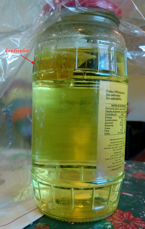 concentrado y 12 horas no bastó para que se nivele el color entre el dosificador y la botella externa de mermelada.